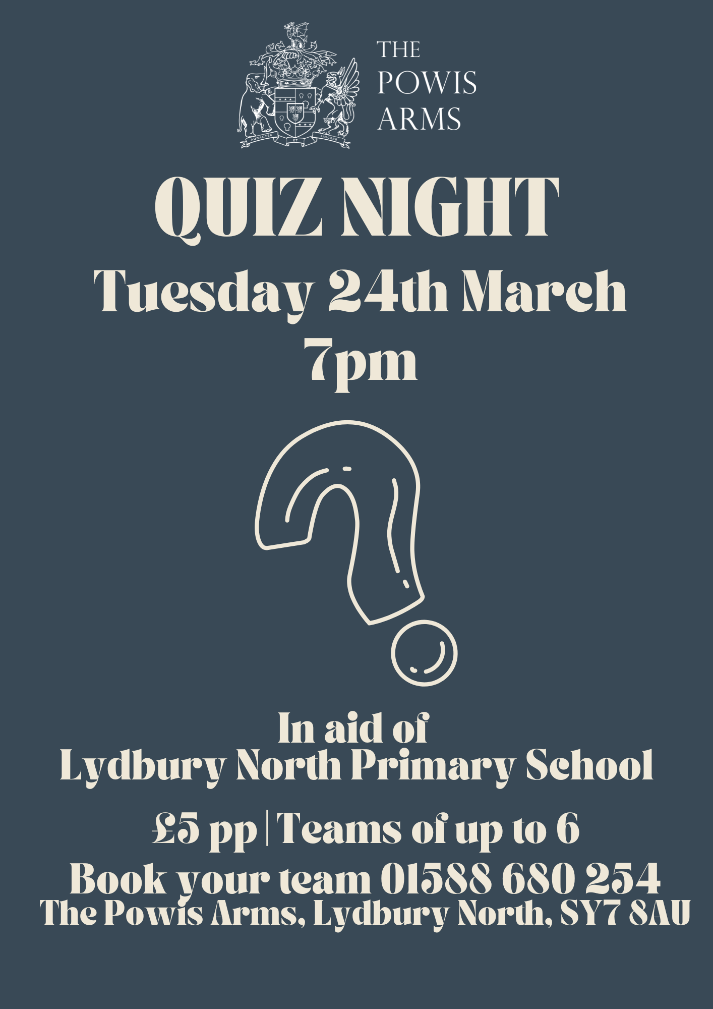 Join us for our quiz night on the 24th March in aid of the Lydbury North Primary School.