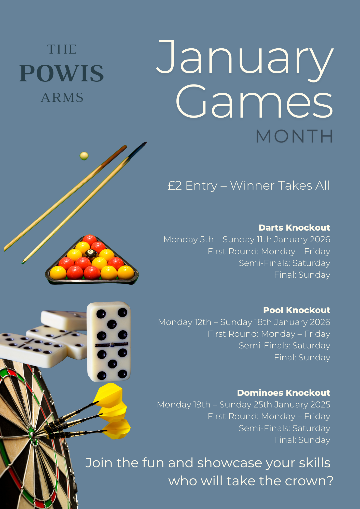 We’d love for everyone to come along and get involved in our month-long celebration of friendly competition and great company! Throughout the month, we’ll be hosting a series of fun events, including Darts Week, Pool Knockout Week, and a Dominoes Knockout Week.