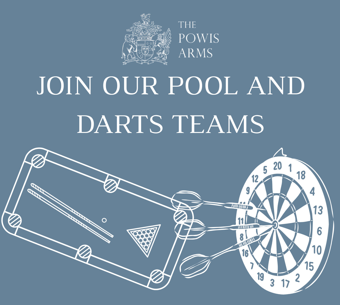 We are currently exploring putting together pool and darts teams for the September season. Please let us know if you would like to be included in either, either pop into the pub and leave your details or email enquires@thepowisarms.com